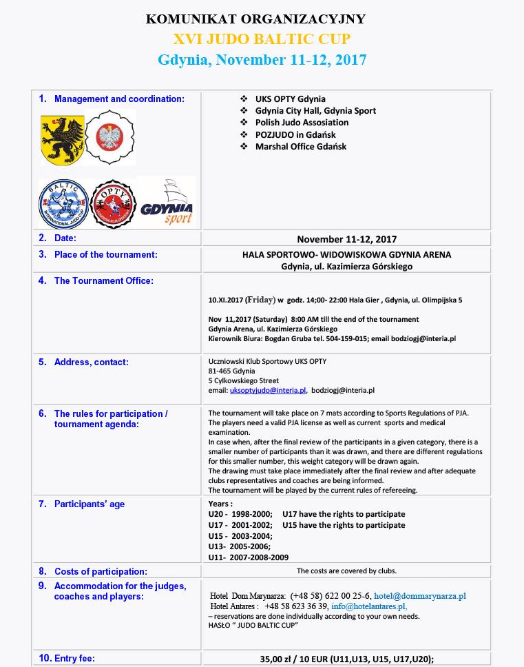 10-12.11.2017 – XVI Judo Baltic CUP, Gdynia