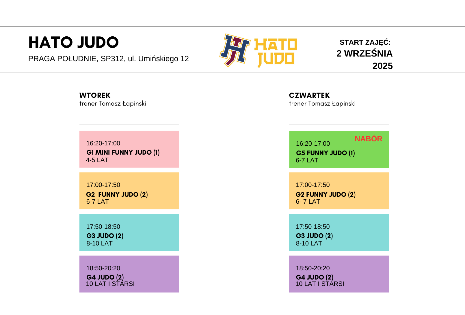Szkolenie sportowe dzieci i młodzieży (grupa G4) prowadzone przez Hato Judo współfinansuje m.st. Warszawa.