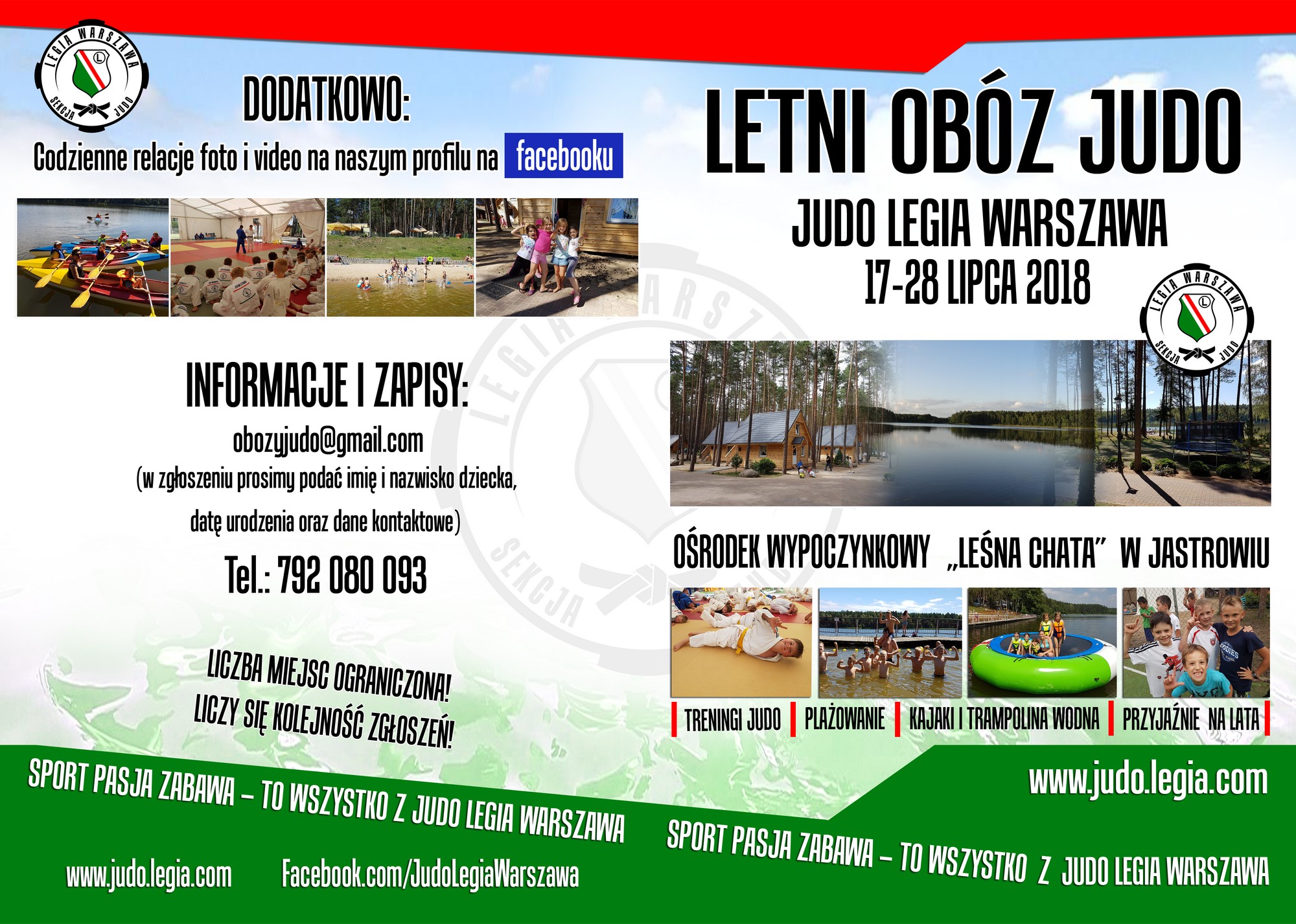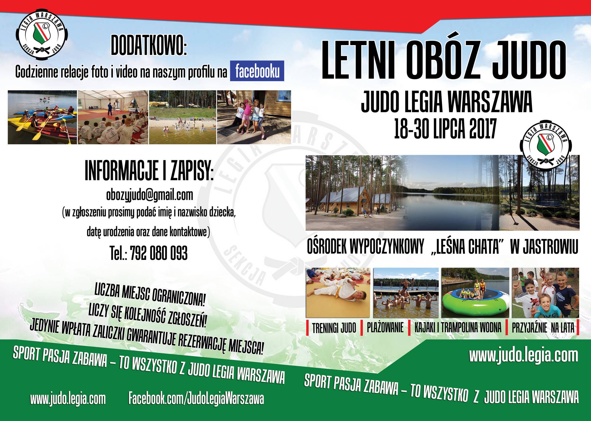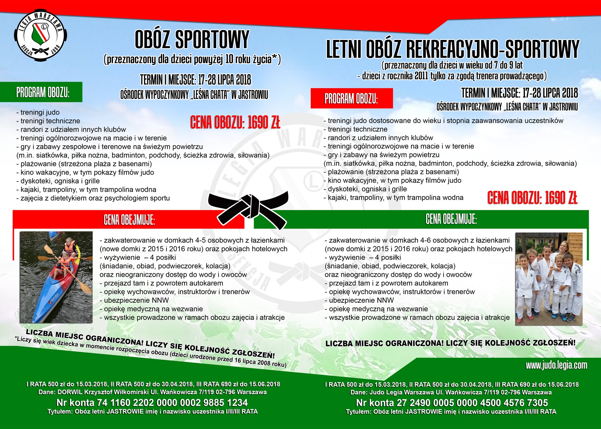 Ilość miejsc ograniczona! Liczy się kolejność zgłoszeń! Zgłoszenie zawierające dane dziecka, datę urodzenia (pełną, nie tylko rocznik) oraz dane kontaktowe rodziców prosimy kierować tylko i wyłącznie na maila dedykowanego obozom: obozyjudo@gmail.com – w tytule prosimy wpisywać JASTROWIE 2018 lub PUCK 2018 oraz imię i nazwisko uczestnika, np. JASTROWIE 2018 – Jan Nowak.